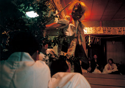 | 山々に霜が降り始める晩秋の頃、高千穂の各集落からは、夜神楽の笛の音が聞こえ始める。 一年の収穫を感謝し、翌年の五穀豊穣を願い、夜を徹して舞われる高千穂夜神楽三十三番。 悠久の歴史の中で、村人が紡いできた神代の物語。神楽宿にしつらえられた神庭には、八百万の神々が舞い遊ぶ。 奉仕者(ほしゃどん)の朗々たる神楽歌に、過去と現在と未来が交錯し、神と人が交わっていく。 かっぽ酒が冷えた体に染み渡り、山の恵みに、ただ感謝する。 ![]() |